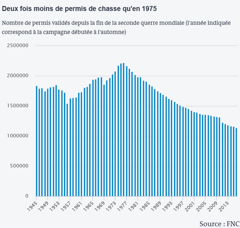La chasse est une pratique en perdition, contestée par presque tous et pratiquée par presque plus personne. Au niveau démographique, pour les chasseurs, c’est la catastrophe: 2,2 millions de chasseurs en 1976, deux fois moins en 2018 soit 1,1 millions de chasseurs licenciés en France (1.03 millions en 2020 selon la FNC). Et l’avenir n’est pas plus rose: les chasseurs sont vieillissants. 53% d’entre eux ont plus de 55 ans et même 29% d’entre eux ont plus de 65 ans. Bref ça sent le sapin sous les gibecières. A l’évocation de ces chiffres je me demande même pourquoi je fais un article sur la chasse et les chasseurs qui semblent voués à une disparition rapide. Je pourrais tranquillement laisser ceux qui ne sont plus des perdreaux de l’année tirer le dernier perdreau de leur vie avant que le problème se règle de lui-même. Toutefois ce serait oublier le caractère revendicatif de ces chasseurs qui au fur et à mesure du dépérissement de leur pratique et de leurs effectifs sont de plus en plus vindicatifs à l’image de leur ex-président Willy Schraen. Comme la bête acculée qui devient méchante, les chasseurs revendiquent leur existence à coup d’arguments tonitruants qu’il est bon de passer en revue.