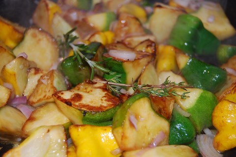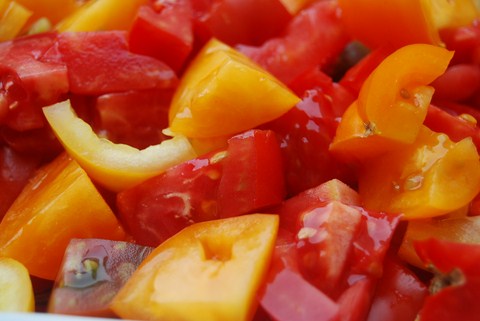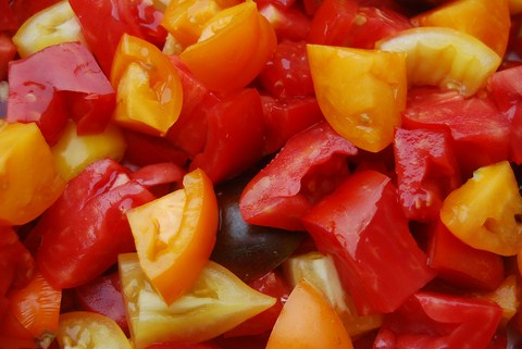 La recette suivante s'adapte à de nombreux légumes et à toutes les viandes alors n'hésitez pas à varier les plaisirs au fil des paniers. Ce serait dommage de se limiter aux seules tomates chair à saucisse. Varier les légumes dans un même plat permet de donner toute sa grandeur à ce plat simple.