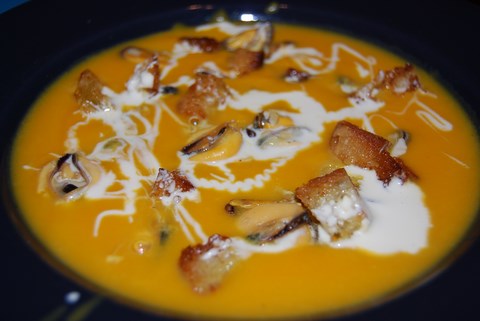Un joli velouté avec une légère note de moutarde, inspiré par Alain Passard.