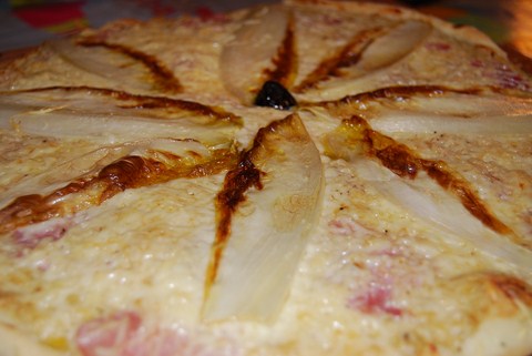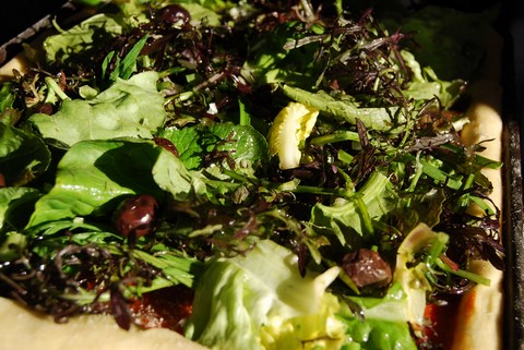 Faire une pâte avec 250 g de farine, 1 oeuf, 1/2 paquet de levure, 1 pincée de sel, 50g de sucre, 1/2 verre d'eau, 50g d'huile d'olive, 1/2 zeste de citron. Pétrisser, former une boule et laisser reposer 2 heures.