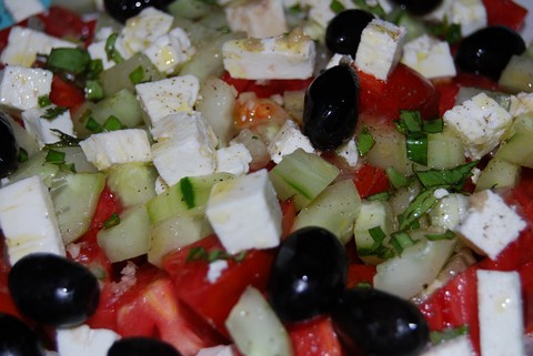 Râper deux concombres avec la peau, les égoutter puis les mettre dans un torchon propre et les presser. Prendre deux ou trois yaourts grecs ou une faisselle de fromage blanc bien égouttée pendant une heure. Ecraser et hacher une petite gousse d'ail. Mixer ensemble yaourts, 3 CS d'huile d'olive, ail, poivre, un trait de vinaigre de cidre ou de citron. Mélanger cette sauce avec les concombres et un peu d'origan haché car c'est l'herbe grecque par excellence. A défaut, trois feuilles de menthe finement hachées.