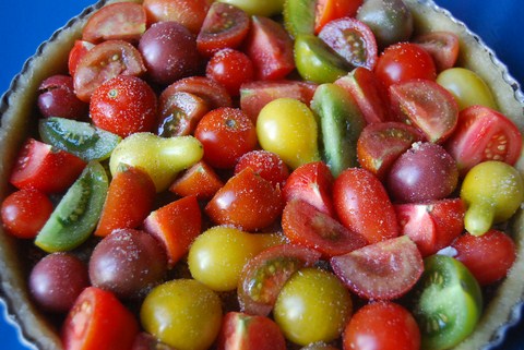 Une excellente manière de ne pas jeter les tomates cerises qui n'ont pas eu le temps de finir de mûrir.