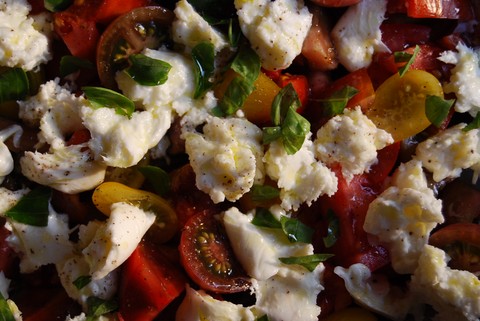 Encore un plat délicieux qui a est très maltraité, victime de la mode et est le plus souvent devenu : tomate hydroponique-mozarella de grande distribution-basilique séché, soit un mélange plus ressemblant à coton-caoutchouc-foin, qu'à l'antipasti italien d'origine.
