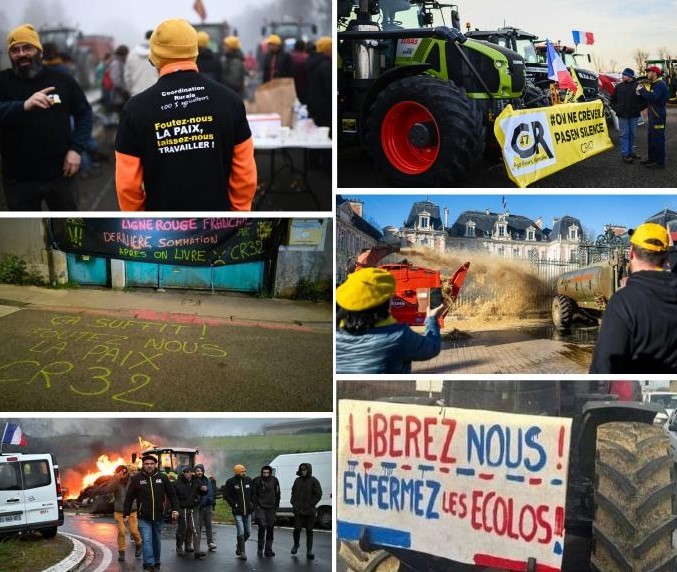 La Coordination rurale tend à cacher la faiblesse de son modèle garicole face aux crises actuelles derrière la force de sa colère selon l'adage qu'un discours creux doit sonner fort, et elle y réussit très bien avec un grand sens du spectacle. Lors de l'hiver 2023-24 et en novembre 24, les actions de la CR se sont portées contre les préfectures avec les mêmes modes d'action violents que ceux de la FNSEA-JA : lisiers, feux de pneus, fumiers, toutes ces méthodes d'actions sans aucun sens autre qu'une expression de violence.
