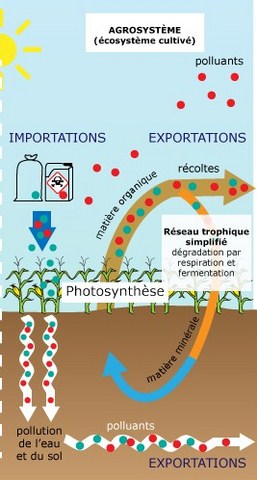 Un agrosystème est un écosystème transformé ou créé par l'homme pour être cultivé, servir à la production agricole. Autrement dit un champ cultivé par exemple. Quels sont les services écosystémiques rendus par un tel espace? Si l'on compare avec un écosystème type forêt, ils sont assez faibles et peu nombreux, si ce n'est la production alimentaire qui est le but de ce champ. Il y a même de nombreux services que ce champ met en péril.