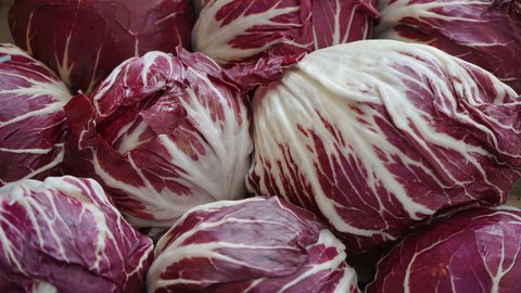 Tous ces salades d'hiver plus charnues et plus amères que les laitues des temps chauds présentent aussi un avantage. Quand les laitues restent salades car elles sont fragiles et fondent à la cuisson, nos amies chicorées peuvent se cuisiner en légumes qu'elles soient Trévise (photo), pain de sucre, scarole, frisée... dans toutes les recettes suivantes (en remplaçant le légume de la recette).