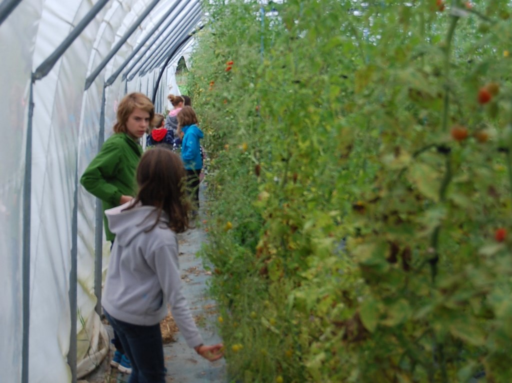 Les Enfants aussi se plaisent dans les serres et le labyrinthe que forment les tomates
