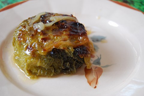 Attention, la viande n'est pas la farce. Pour une bonne farce, qui se tienne mais ne soit pas trop compacte, il faut suivre une règle : en volume (et non en poids), il faut un tiers de viande, un tiers de chair de légumes et d'herbes et un tiers de pain que ce soit du pain trempé à l'eau ou au lait et essoré ou de la chapelure. Les légumes, c'est-à-dire la chair des légumes évidés plus de l'oignon et de l'ail sont hachés et revenus doucement à l'huile d'olive pour rendre leur eau. On mélange ensuite légumes, viande, pain, sel, poivre et les herbes hachées (celles que l'on veut, en accord avec les légumes) sans oublier les oeufs si la viande est cuite. On farcit ensuite les légumes et on les dispose dans le plat huilé avec du thym, quelques gousses d'ail écrasées et un fond de bouillon de volaille d'eau ou de l'eau de végétation des légumes quand on les à creusés, surtout les tomates (5mm dans le fond du plat). On met ensuite au four à 180°c jusque à ce que ce soit cuit. Si les légumes sont gros on descend à 150°c et on rallonge la cuisson. On vérifie qu'il reste toujours du bouillon et on arrose au cours de la cuisson. La cuisson dépend de la viande employée : environ 1/2 h pour de la viande cuite, environ 1h pour de la crue.