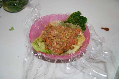Pour la viande, il y a deux possibilités : cuite ou crue. Au départ ce plat est un plat de restes et donc à base de viande cuite. Qu'elle soit cuite ou crue la viande doit être hachée pas mixée, si la viande est cuite il faudra juste ajouter un ou deux oeufs pour lier la farce. A part cela adapter la viande au légume et n'oubliez pas l'agneau qui va très bien avec les légumes du soleil alors que le porc voire le lard va très bien dans les pommes de terre ou les oignons.
