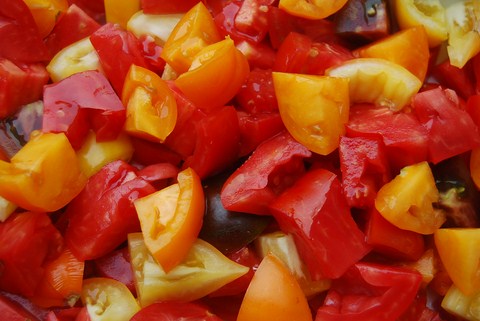 La recette suivante s'adapte à de nombreux légumes et à toutes les viandes alors n'hésitez pas à varier les plaisirs au fil des paniers. Ce serait dommage de se limiter aux seules tomates chair à saucisse. Varier les légumes dans un même plat permet de donner toute sa grandeur à ce plat simple.