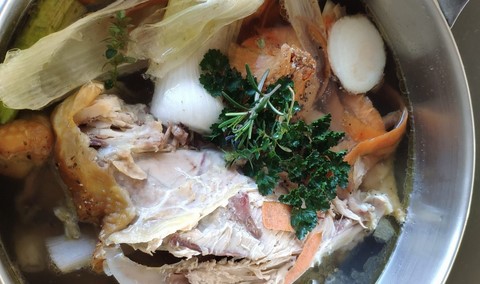 Les bouillons sont au centre de la cuisine classique et de nombreuses cuisines asiatiques ou d'Europe centrale. Aujourd'hui, ils sont souvent délaissés en tant qu'aliment. Ils sont le plus souvent un simple auxiliaire de cuisine acheté en cubes et jeté dans l'eau de cuisson ou dans les fonds de sauce. Ces bouillons cubes sont utiles mais il est un peu dommage que nous jetions, nous, nos parures de viande et nos épluchures de légumes au lieu d'en faire de délicieux bouillons. Par ailleurs nous achetons des bouillons industriels déshydratés à grand renfort d'énergie et faits de légumes entiers ou de pièces de viande qui pourraient être consommées. Alors si on faisait nos bouillons économiques, écologiques et délicieux? Car il n'y a rien de plus simple à partir du moment où l'on a des légumes biologiques car sinon faire infuser les épluchures c'est se préparer une belle infusion de pesticides...