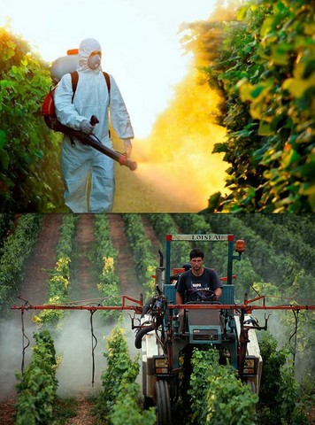 L'intérêt d'un vin biologique ne tient pas qu'à la diminution des additifs de vinification mais surtout à l'absence de pesticides dans la viticulture. En effet, cette branche agricole est la plus gourmande en pesticides et explique la surabondance des pesticides en France par rapport aux autres pays. Une étude récente de l'INVS, institut national de veille sanitaire montre que la teneur en pesticides dans le sang des français est 3 fois supérieure à celle des allemands ou même des américains. Or la principale différence entre ces 3 agricultures n'est pas que les deux autres sont vertueuses, loin de là, mais qu'ils ont très peu de viticulture.En 2006, la viticulture française représentait 3% des terres agricoles pour 14% des dépenses de pesticides. Elle utilise près de 400€ de pesticides par hectare de vigne par an contre 134€ par hectare pour des céréales par exemple. Une parcelle reçoit une quinzaine de traitements annuels sur une année normale. Le mode de culture sur terre nue et en coteau le plus souvent entraine à la moindre pluie tous ces pesticides dans les eaux de surface, c'est-à-dire l'eau que l'on consomme (quand on ne boit pas de vin). Une partie des pesticides épandus rentrent dans le raisin ou restent à sa surface et finissent dans la cuve et la bouteille. Une enquête Que choisir cité par le bon blog oenophile No wine is innocent (Rien que le titre, un bon jeu de mots sur un bon groupe mérite le détour)est édifiante : il y a 300 fois plus de teneur en pesticides dans le vin que dans l'eau potable souvent critiquée. Certains bordeaux atteignent même 3000 fois la norme appliquée à l'eau potable. Mouton Cadet (2010), le vin le plus diffusé dans le monde avec 12 millions de bouteilles annuelles compte même jusqu'à 14 pesticides différents dont 1 est interdit en France. A côté les vins bio n'en contiennent pas ou seulement des traces par contamination des parcelles voisines. Boire bio est donc meilleur pour notre santé mais pas seulement.