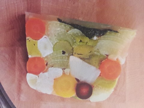 On commencera par une magnifique terrine de légumes, un plat classique mais très moderne dans cette manière de n'utiliser que des légumes pour faire un grand plat. Cette terrine de légumes peut d'ailleurs être le plat principal pour ceux qui ne veulent pas de viande. Vient ensuite une classique terrine de volaille que l'on fera 4 jours à l'avance, tranquillement, un vrai atout pour le cuisinier ou la cuisinière. Son accompagnement de pickles de betterave chioggia se fera en même temps. La terrine de chèvre se fera la veille ainsi que le dessert une terrine de courge aux agrumes. Il s'agit véritablement d'un dessert classique le millet au potiron dont les bressans se régalaient déjà au XIXe siècle. Ainsi le jour même, il ne restera que des salades à faire.