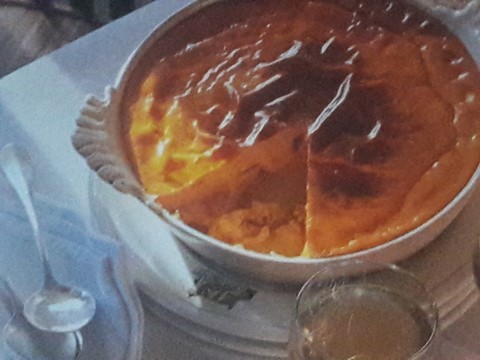 Couper 700g de courge coupée en petits dés. Les faire cuire au beurre pour bien faire sortir l'eau mais sans coloration jusqu'à obtenir une purée. Laisser refroidir. Mélanger ensemble 3 oeufs, 50g de farine, 50g de sucre, 25 cl de lait et 5cl de crème fraîche épaisse. Mélanger au fouet avec une rapûre de muscade, quelques tours de poivre du moulin, le zeste d'1 demi citron râpé et le zeste d'1 demie orange râpé. Incorporer à la purée de courge. Verser la préparation dans un plat assez grand pour avoir une hauteur de préparation de 4 à 5 cm. Mettre au four à 180°c au bain marie et cuire une quarantaine de minutes en surveillant : le millet doit être figé comme un flan mais ne doit pas trop colorer. Sortir et mettre au froid au moins deux heures avant de manger.
