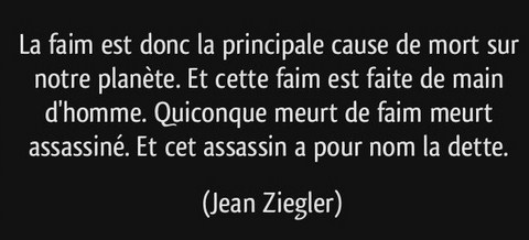 C'est, là, la contradiction fondamentale de notre monde autosuffisant mais dans lequel 1 personne meurt de faim toutes les 3 secondes. Ce paradoxe fait dire à Jean Ziegler, ex-rapporteur spécial pour le droit à l'alimentation à l’ONU de 2000 à 2008 :