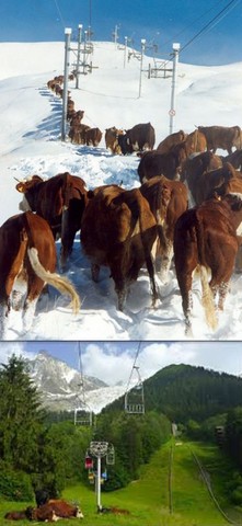 Qui permet cette réussite économique? Les vaches et les moutons qui broutent et entretiennent les alpages pendant les 6 mois sans neige et évitent qu'ils ne se referment empêchant tout ski. Sans l'élevage extensif en alpage, il faudrait tondre la montagne pour que la forêt ne se réinstalle pas : on n'imagine pas le surcoût, mais y penser permettrait de réfléchir à rémunérer ce rôle de paysagiste des paysans et de leurs animaux.
