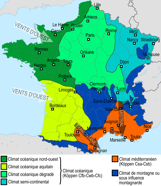 - l'apparition d'un climat subméditerranéen qui remplace le traditionnel climat océanique dégradé.