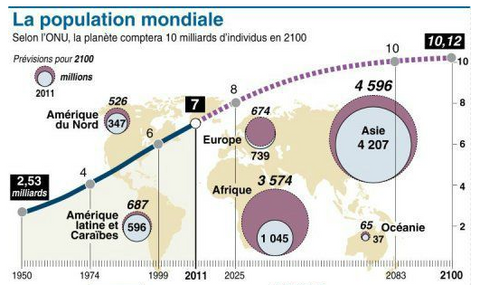 Le maximum de population devrait être atteint vers la fin du siècle avec 10 milliards d'êtres humains. Après la population sera stable. C'est beaucoup mais c'est loin d'être impossible. En effet notre agriculture pourrait aujourd'hui nourrir 10 à 12 milliards d'êtres humains si elle produisait à bon escient (voir Le Panier et la faim dans le monde).